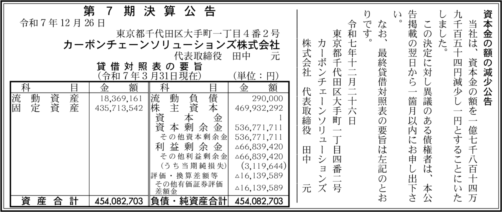 | 会社名 | カーボンチェーンソリューションズ株式会社 |