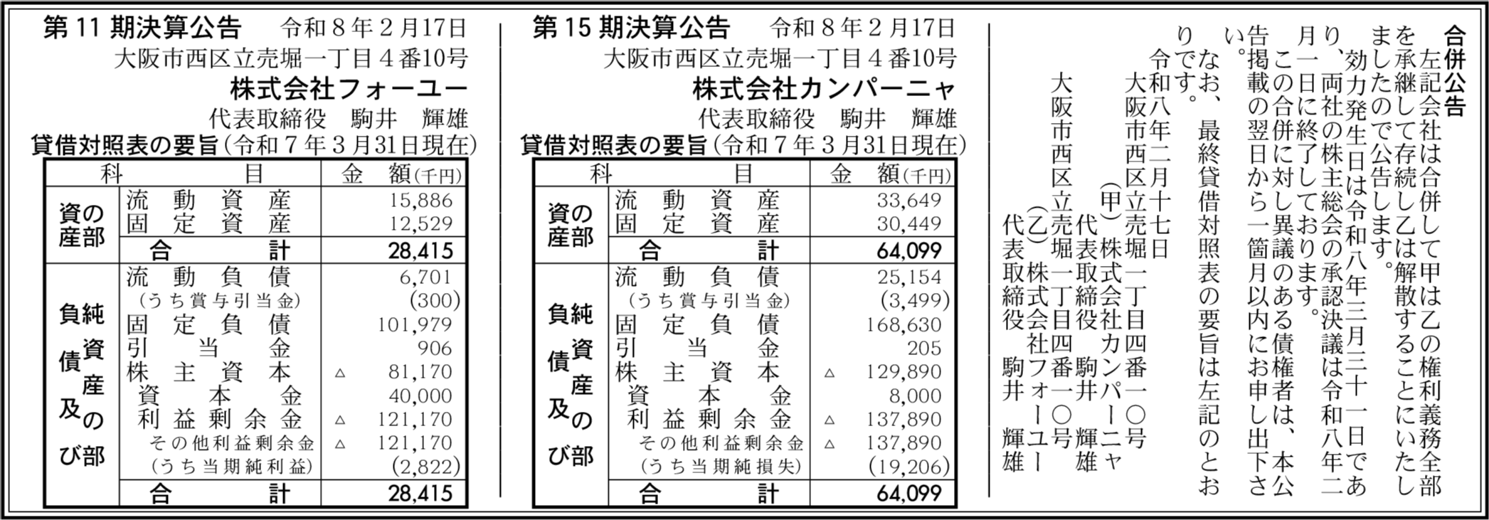 株式会社カンパーニャ 大阪市西区 【2025年3月期】 |