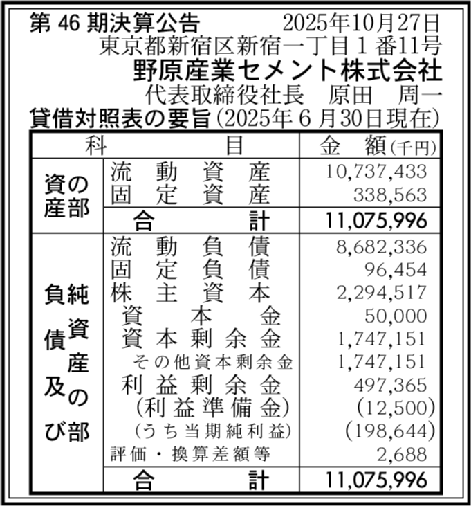 ノハラスチール株式会社 東京都新宿区 【2025年6月期】 |