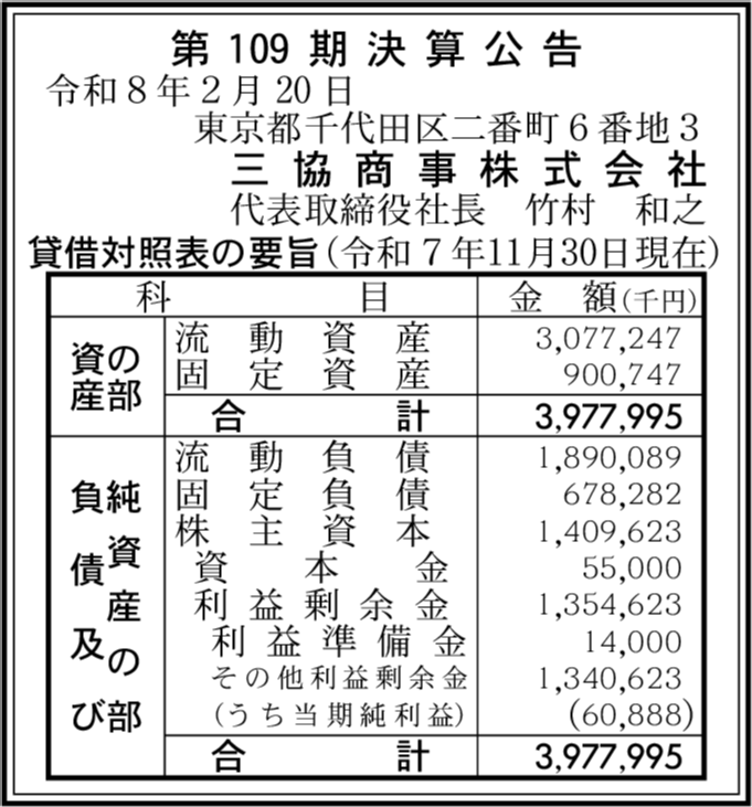 株式会社太洋商会 東京都千代田区 【2025年11月期】 |