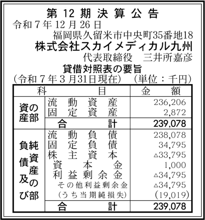株式会社スカイメディカルネクスト 福岡県久留米市 【2025年3月期】 |