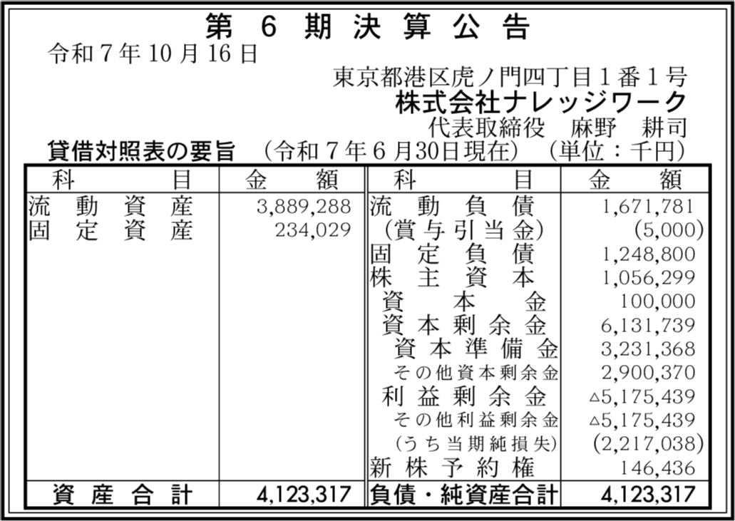 利益剰余金 | △51億7,543万9,000円 (赤字拡大) |