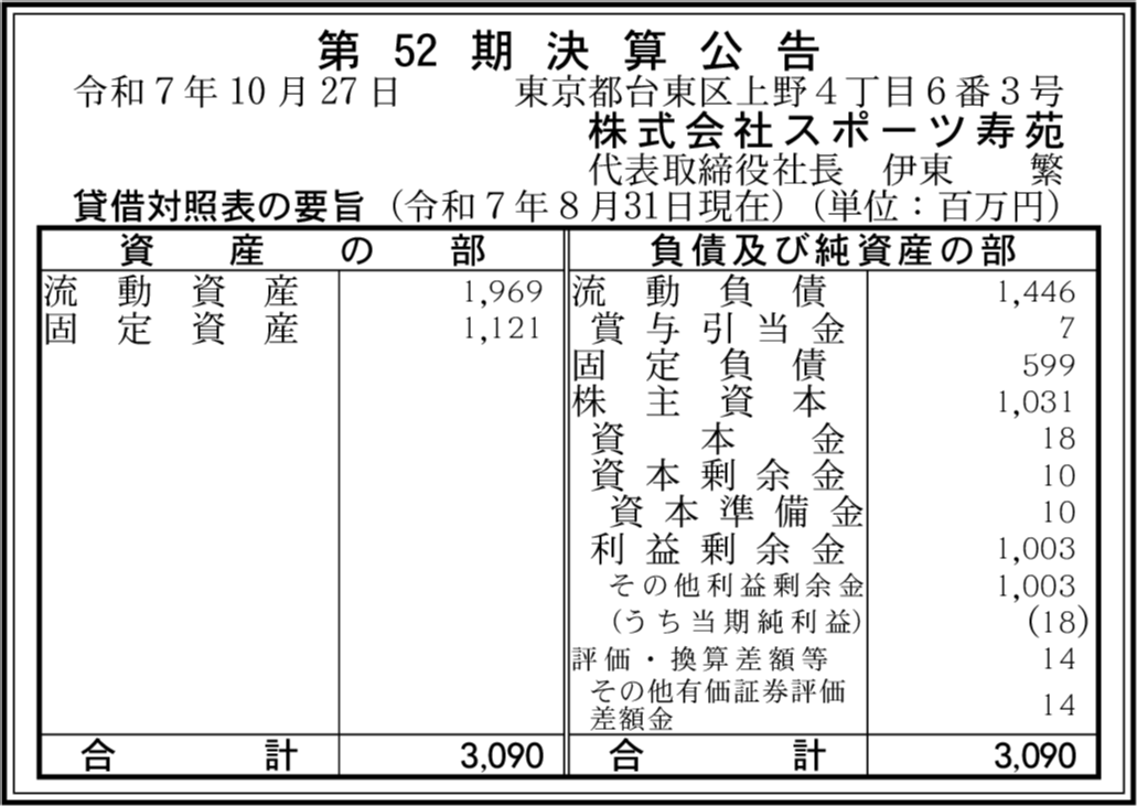 | 利益剰余金 | 10億300万円 (+1.83%) |