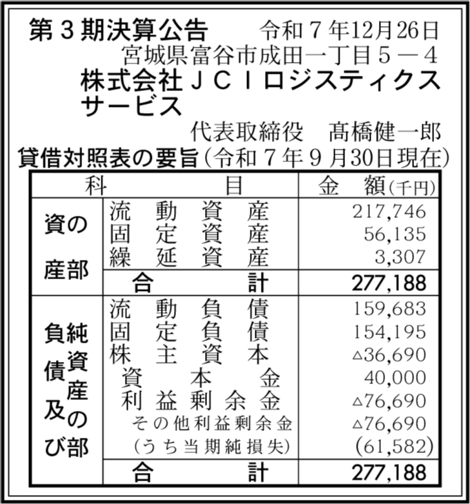 株式会社ジェー・シー・アイ 宮城県富谷市 【2025年6月期】 |