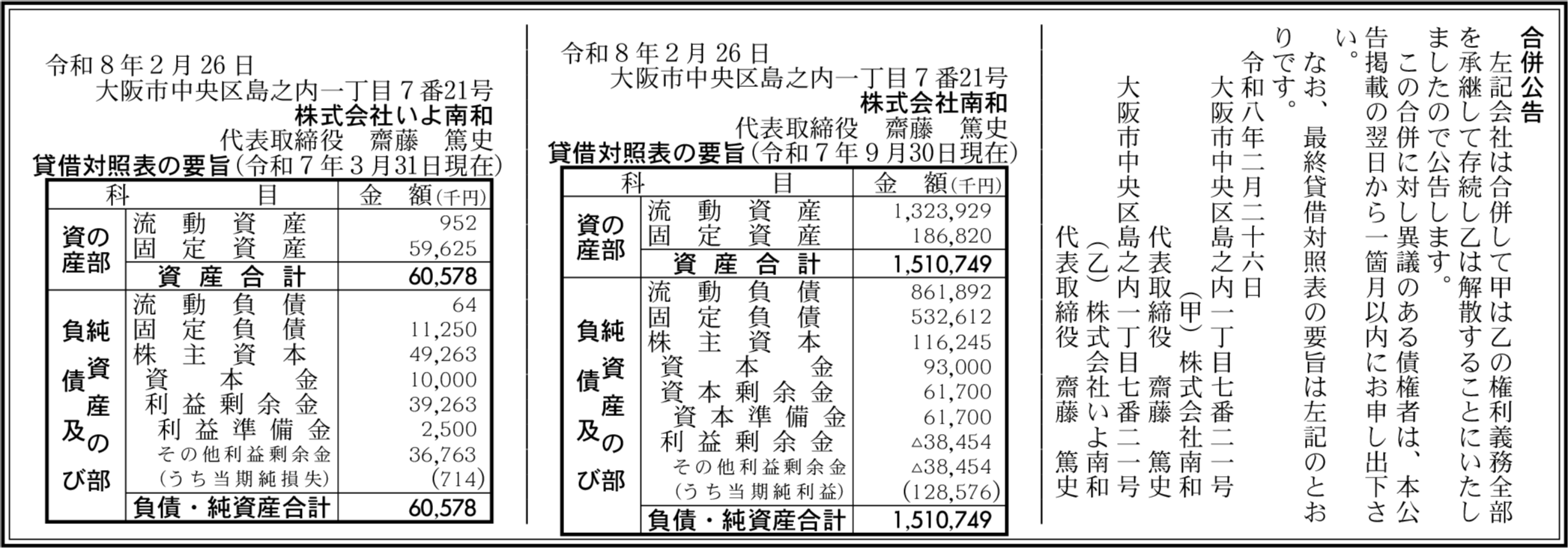 株式会社南和 大阪市中央区 【2025年9月期】 |