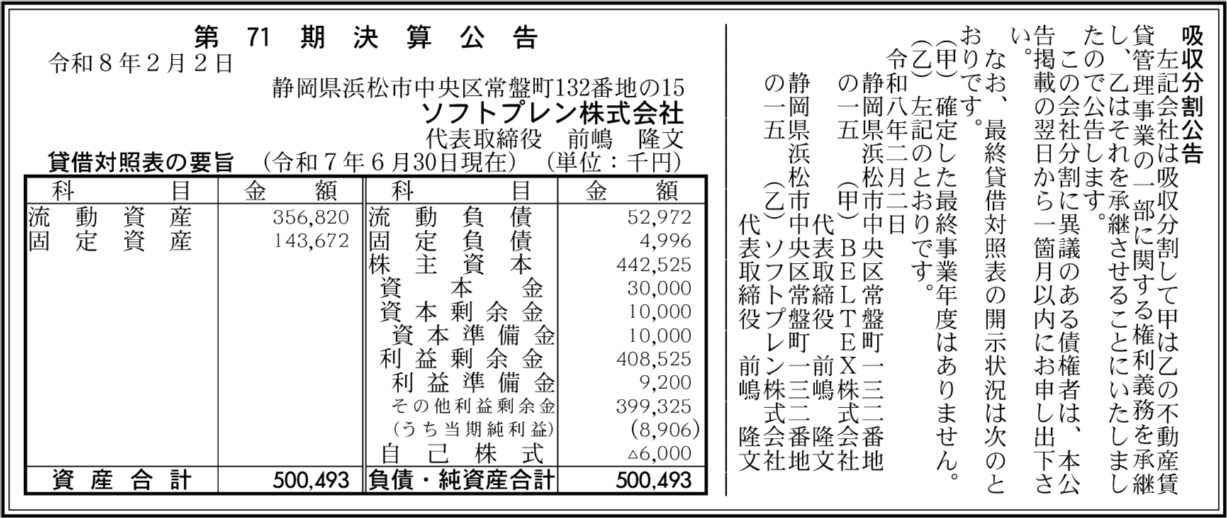 | 総資産 | 5億49万3,000円 |