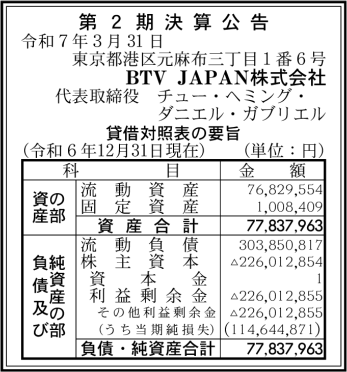 純利益 | △1億1,464万4,871円 (赤字拡大) |