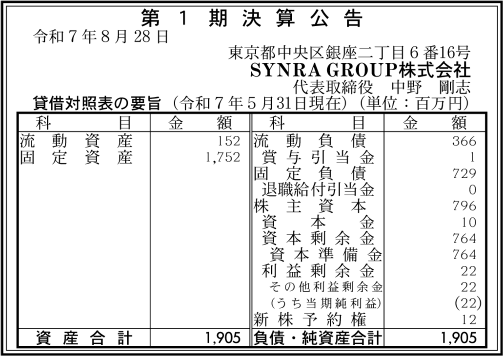会社名 | SYNRA GROUP株式会社 |