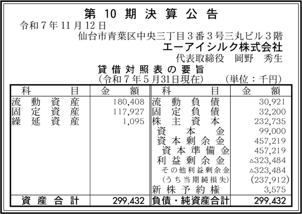 | 会社名 | エーアイシルク株式会社 |