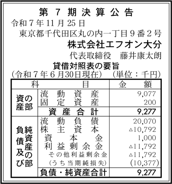 株式会社エフオン第七 東京都千代田区 【2025年6月期】 |