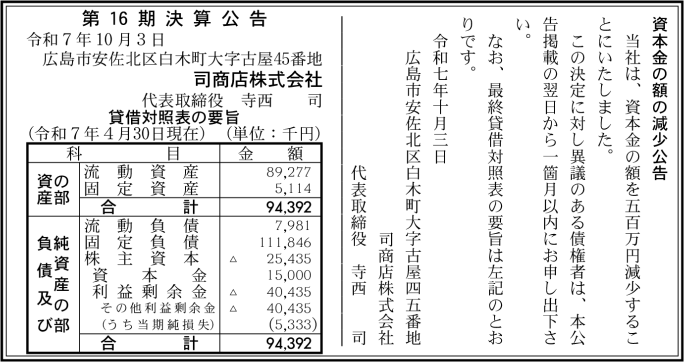 寺下工業株式会社 広島市安佐北区 【2025年3月期】 |