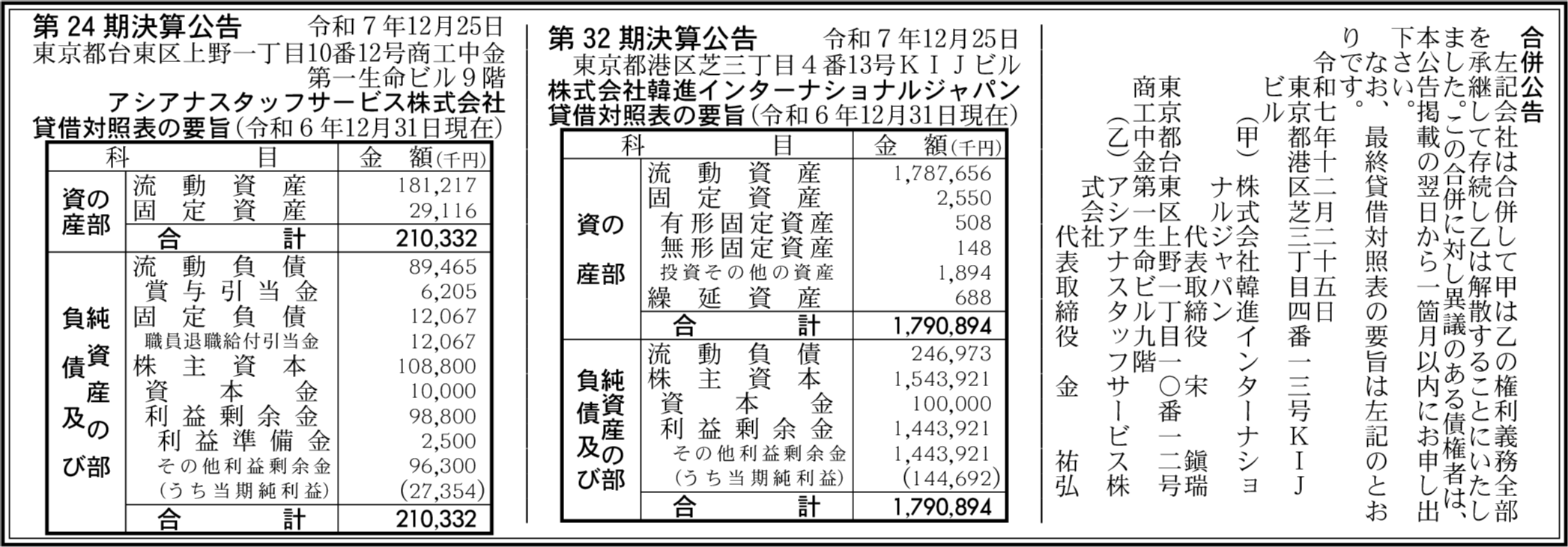 Korean Air Investment Japan株式会社 東京都港区 【2024年12月期】 |