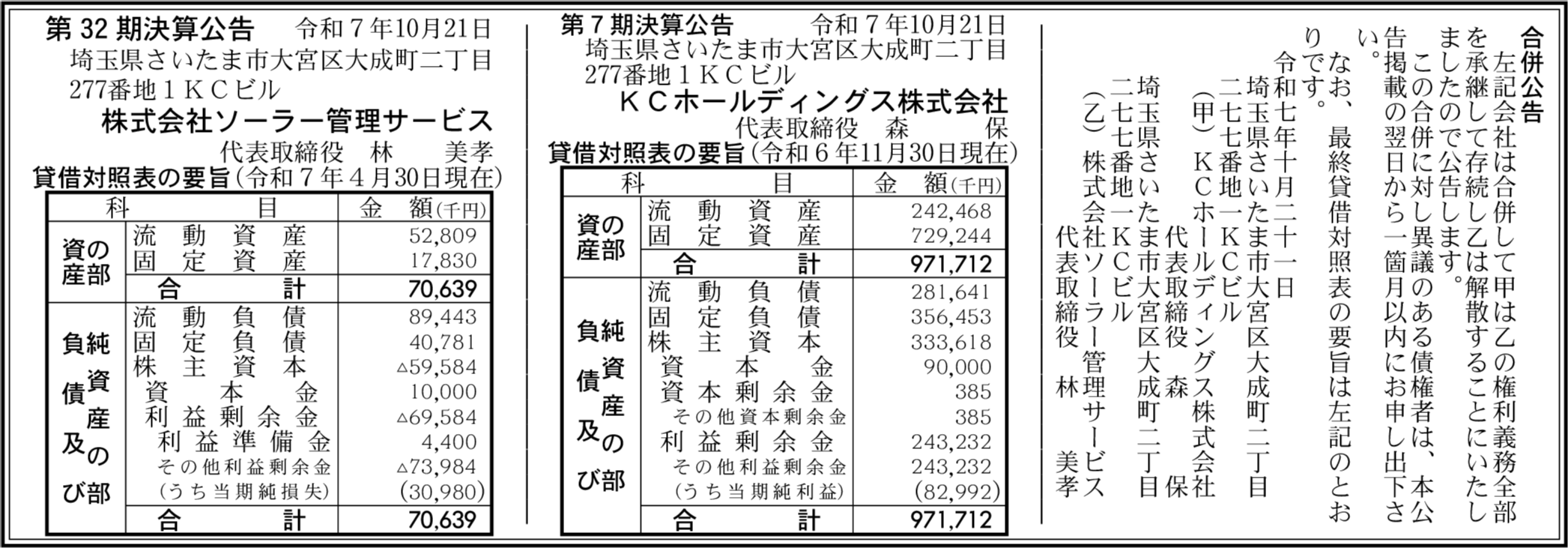 株式会社ソーラー管理サービス 埼玉県さいたま市大宮区 【2025年4月期】 |