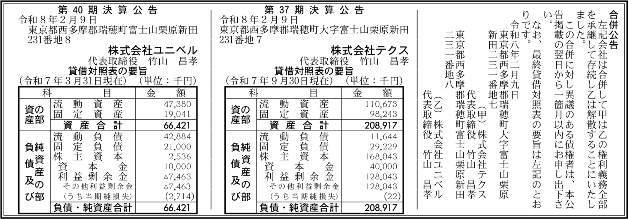 株式会社テクス 東京都西多摩郡瑞穂町 【2025年9月期】 |