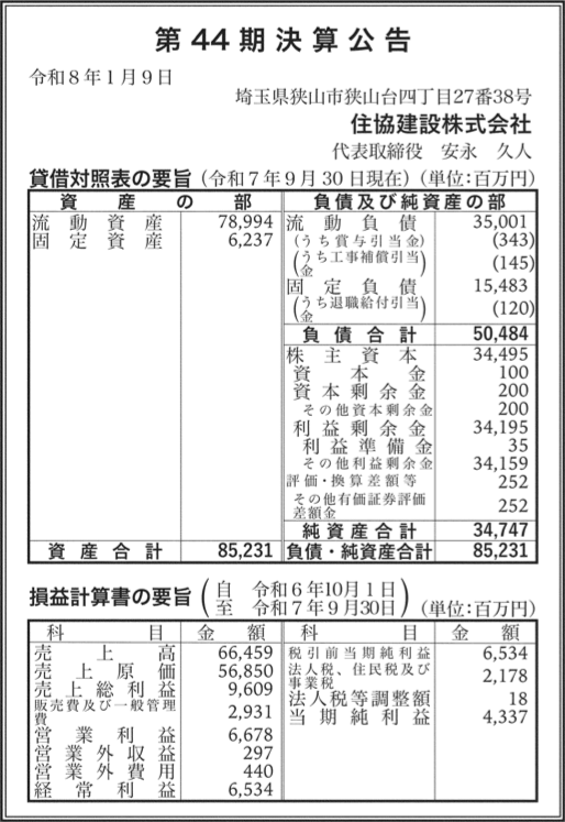 株式会社住協 埼玉県所沢市 【2024年9月期】 |