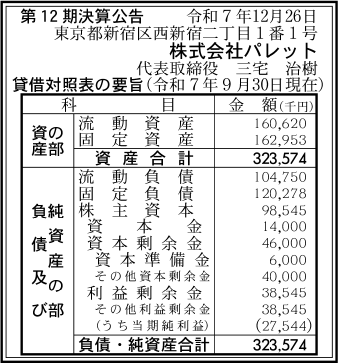 株式会社パレット閉鎖済み 東京都新宿区 【2021年9月期】 |
