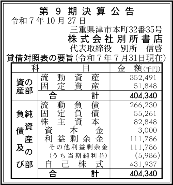 | 会社名 | 株式会社別所書店 |
