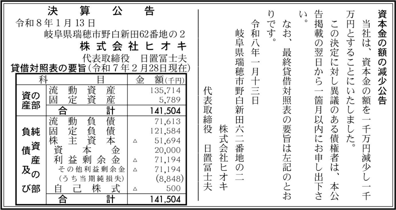 株式会社はつほの 岐阜県瑞穂市 【2025年2月期】 |