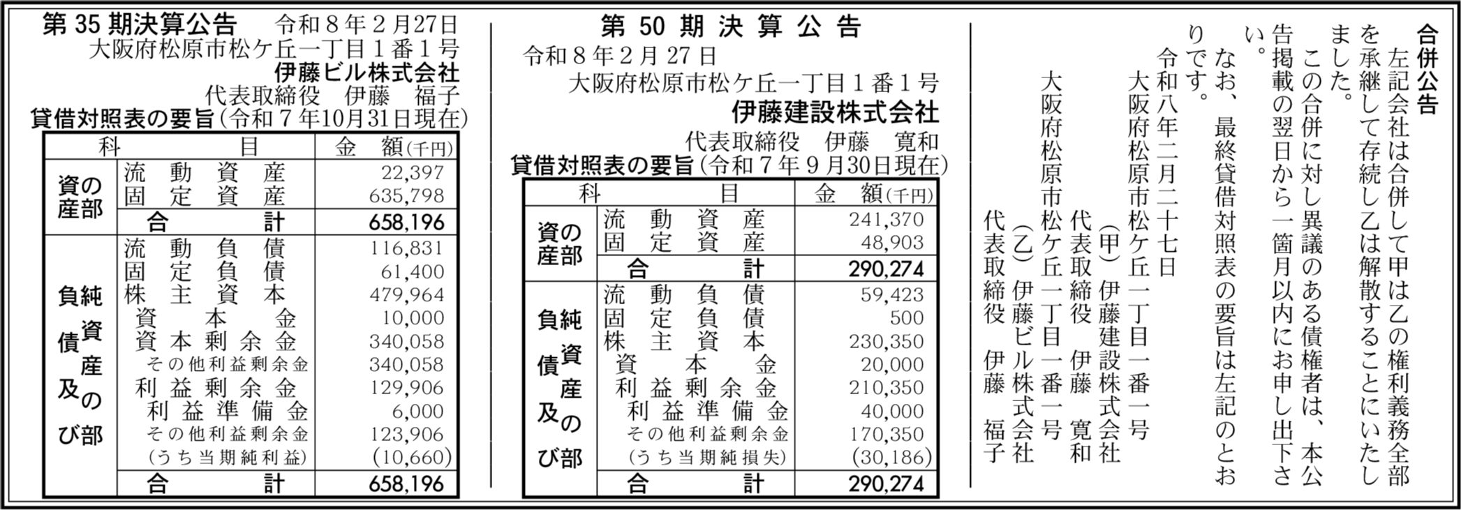 伊藤建設株式会社 大阪府松原市 【2025年9月期】 |