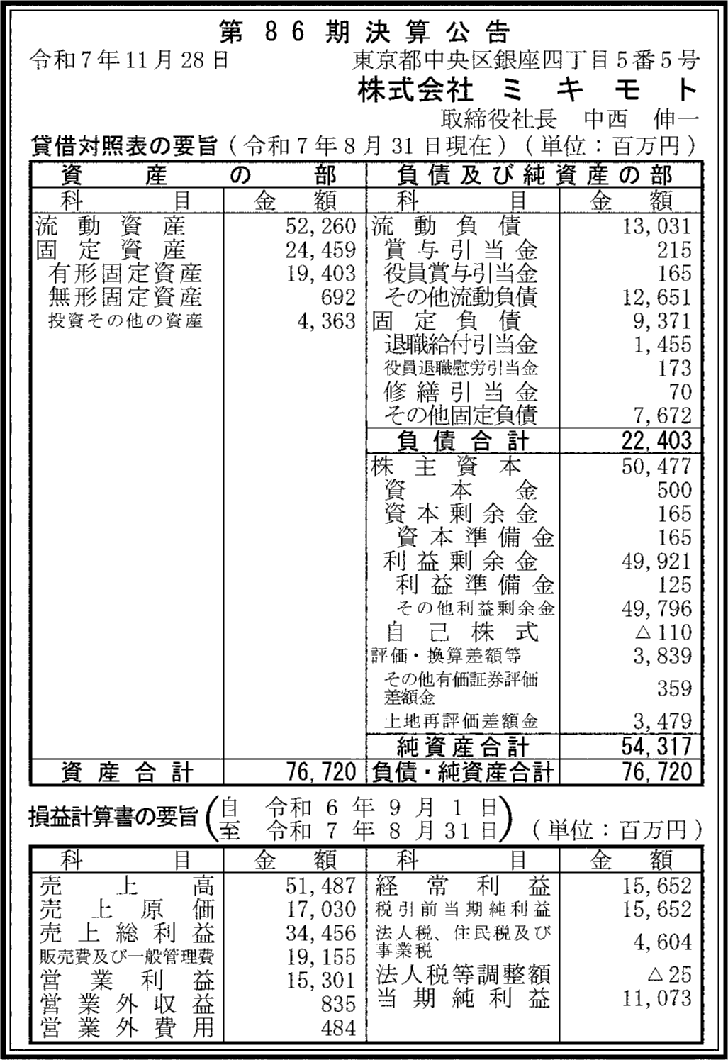 | 御木本製薬株式会社 | 三重県伊勢市 | 5億8万7,000円 (▲3.74%) |