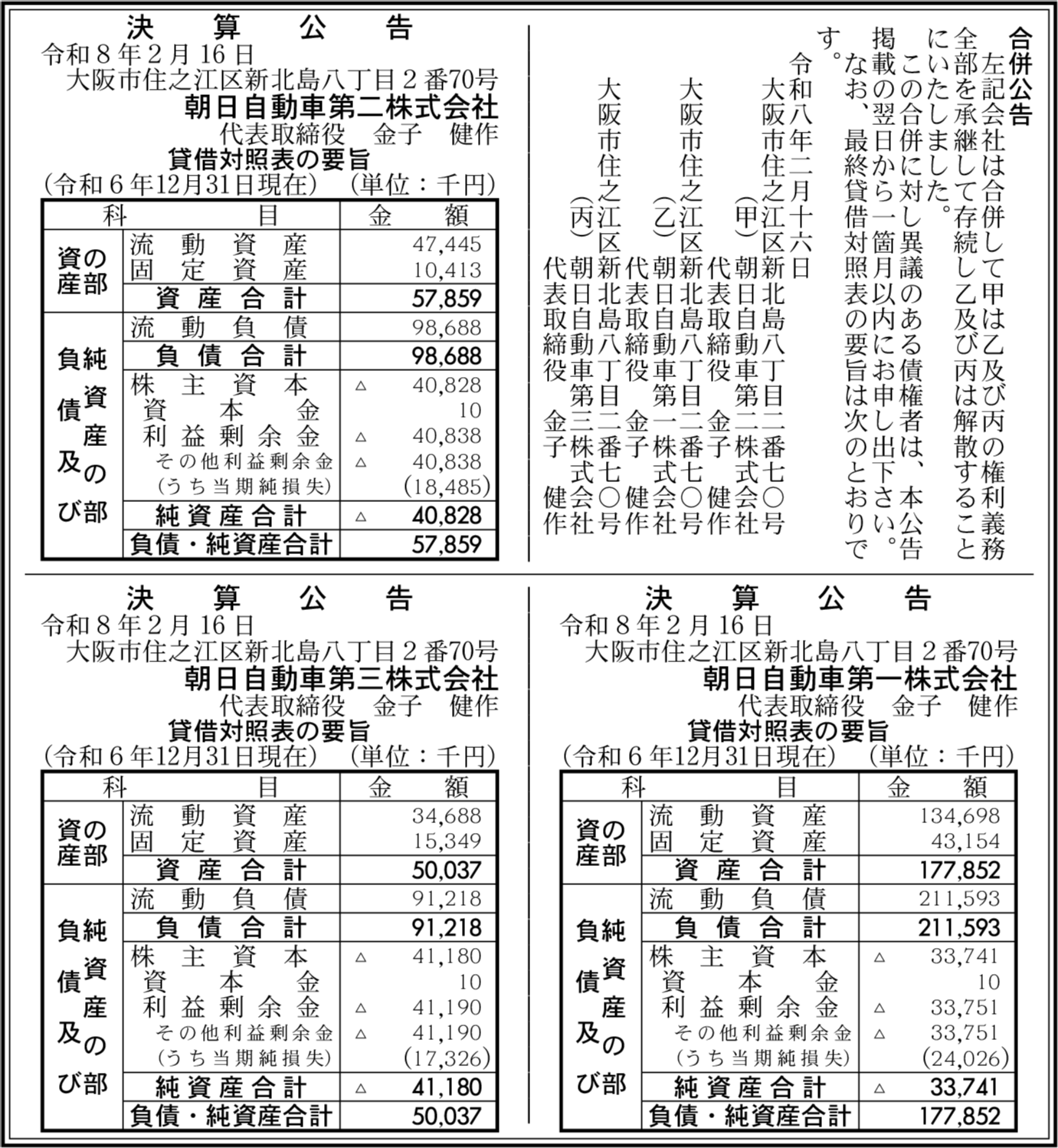 朝日自動車第三株式会社 大阪市住之江区 【2024年12月期】 |