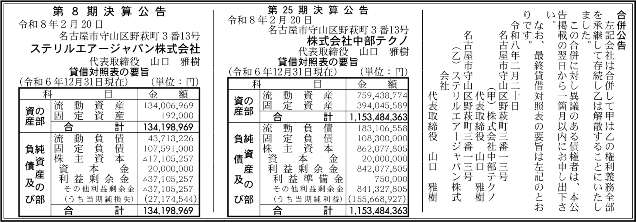 ステリルエアージャパン株式会社 名古屋市守山区 【2024年12月期】 |