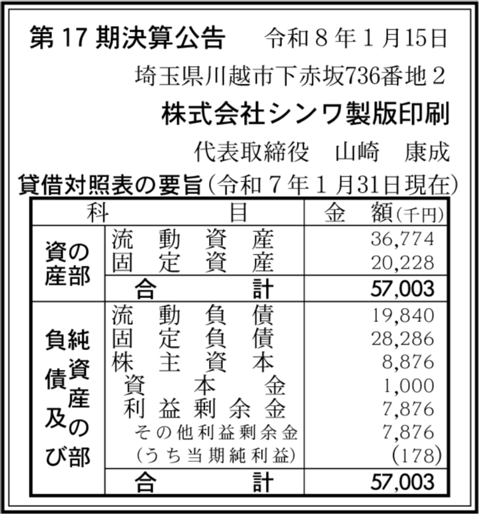 株式会社新和製作所 埼玉県川越市 【2025年4月期】 |