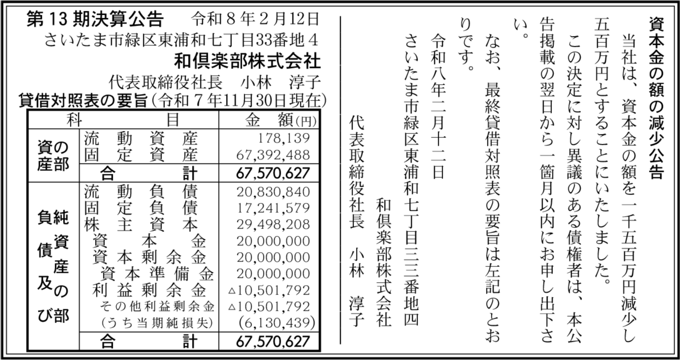 | 会社名 | 和倶楽部株式会社 |