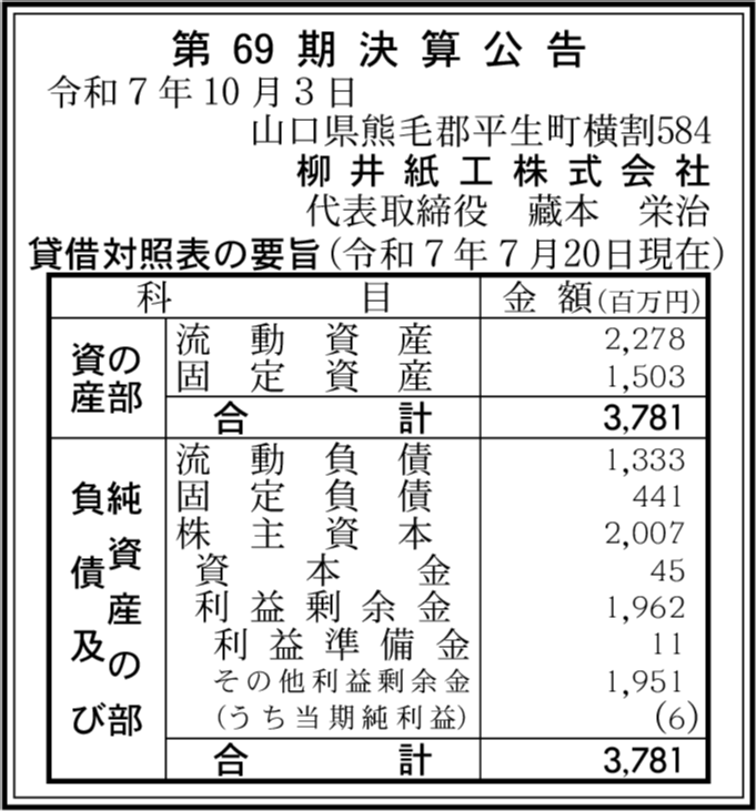 | 総資産 | 37億8,100万円 (▲0.34%) |