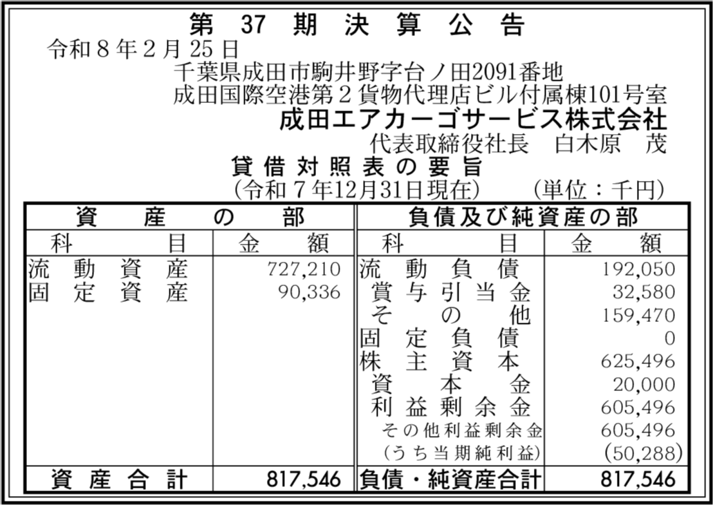 | 会社名 | 成田エアカーゴサービス株式会社 |