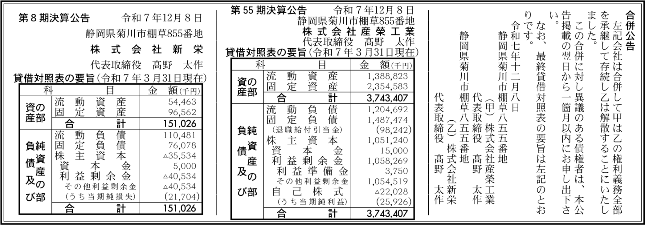 | 会社名 | 株式会社産榮工業 |