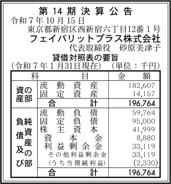 フェイバリックスネットワーク株式会社閉鎖済み 福岡市中央区 【2020年9月期】 |