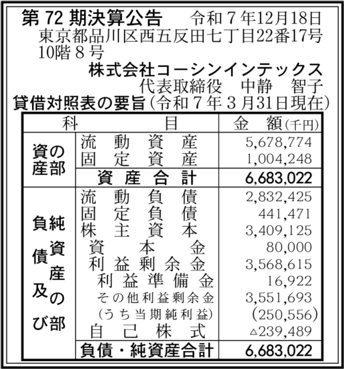 株式会社日本農業 東京都品川区 【2025年7月期】 |