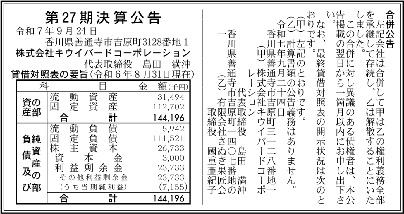 大企建設株式会社 香川県善通寺市 【2024年6月期】 |