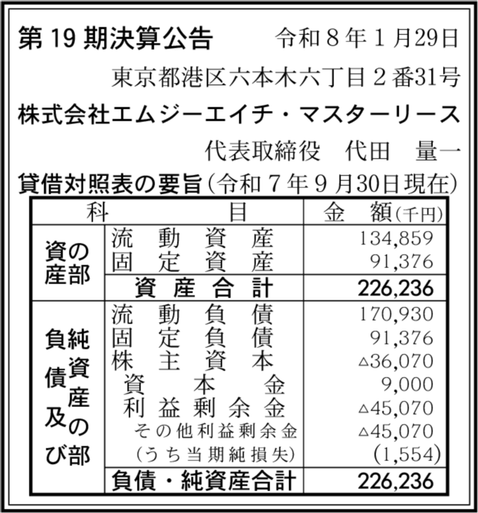 | 会社名 | 株式会社エムジーエイチ・マスターリース |