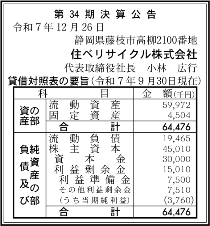 | 利益剰余金 | 1,501万円 (+0.07%) |