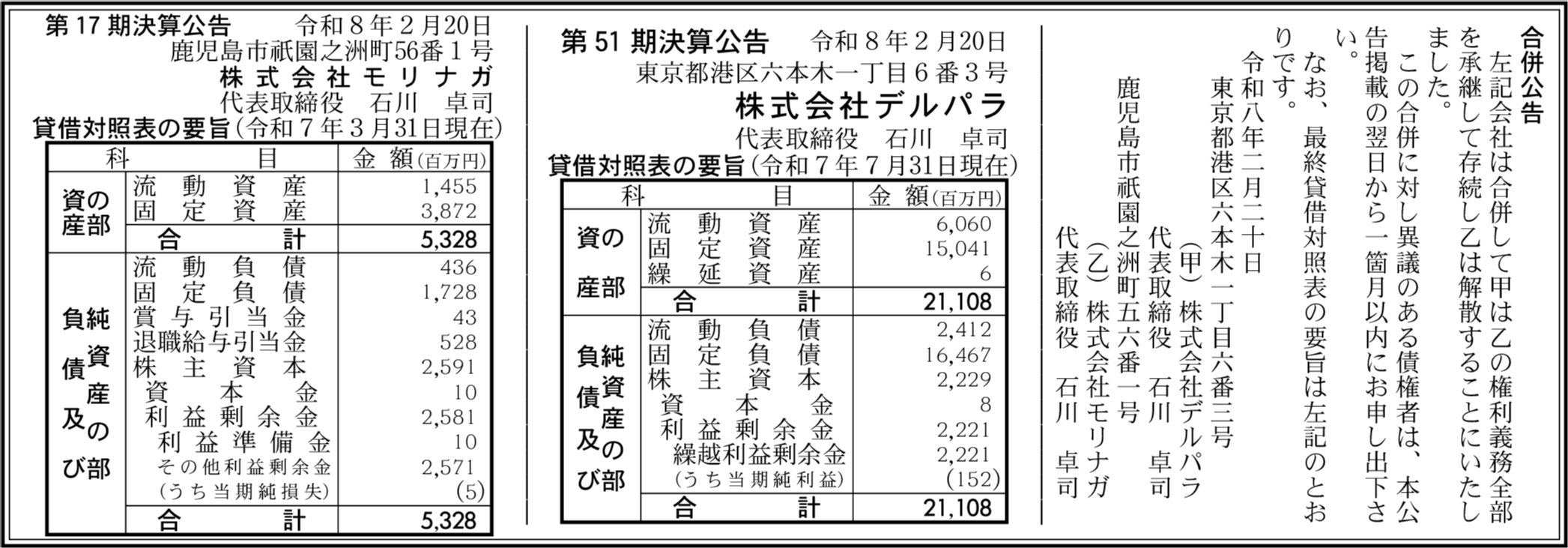 株式会社モリナガ 鹿児島市 【2025年3月期】 |