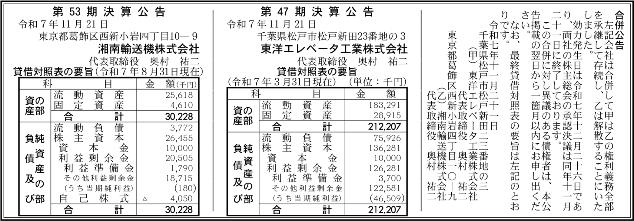 東洋エレベータ工業株式会社 千葉県松戸市 【2025年3月期】 |