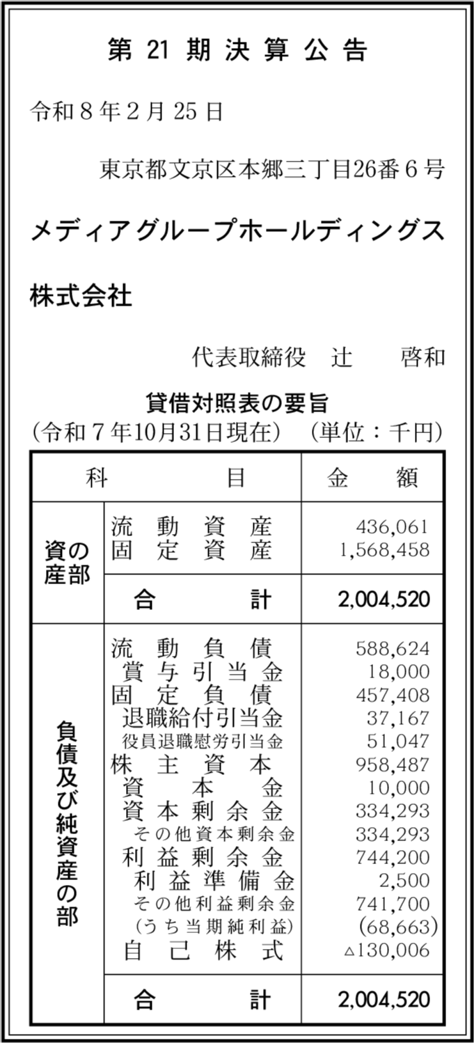 メディア株式会社 東京都文京区 【2025年10月期】 |