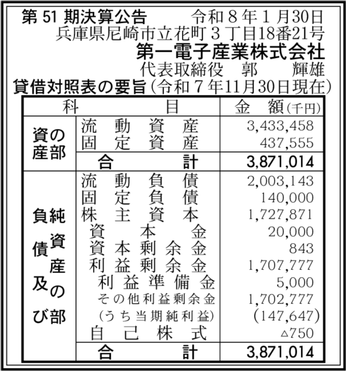 ワイエスフィルタージャパン株式会社 兵庫県尼崎市 【2025年9月期】 |
