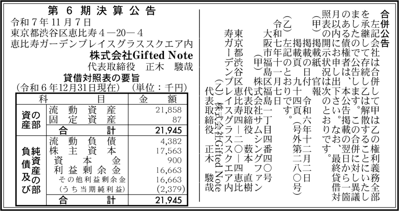 | 会社名 | 株式会社Gifted Note |