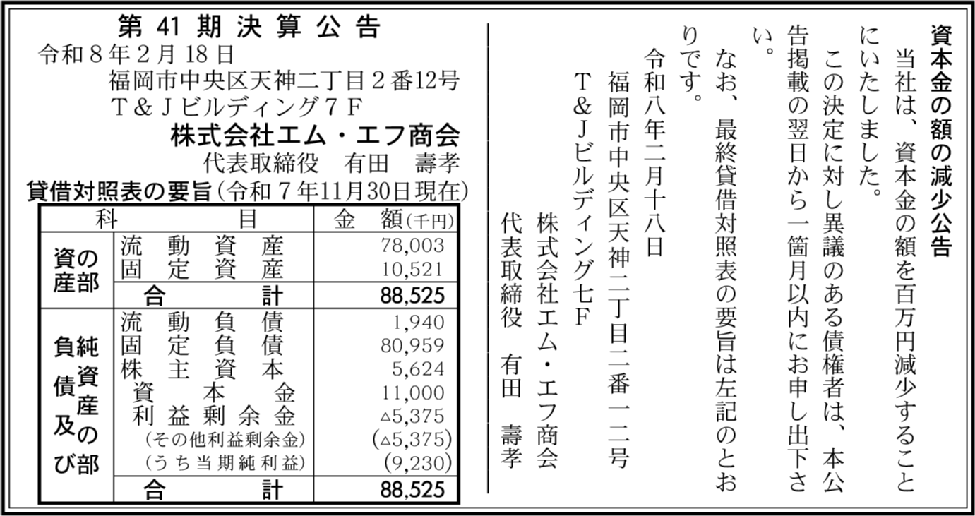 日の里コミュニティ特定目的会社 福岡市中央区 【2025年11月期】 |