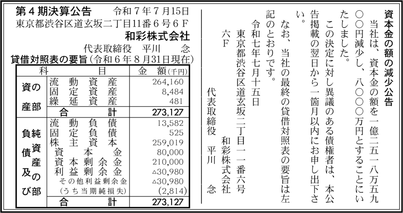 | 会社名 | 和彩株式会社 |