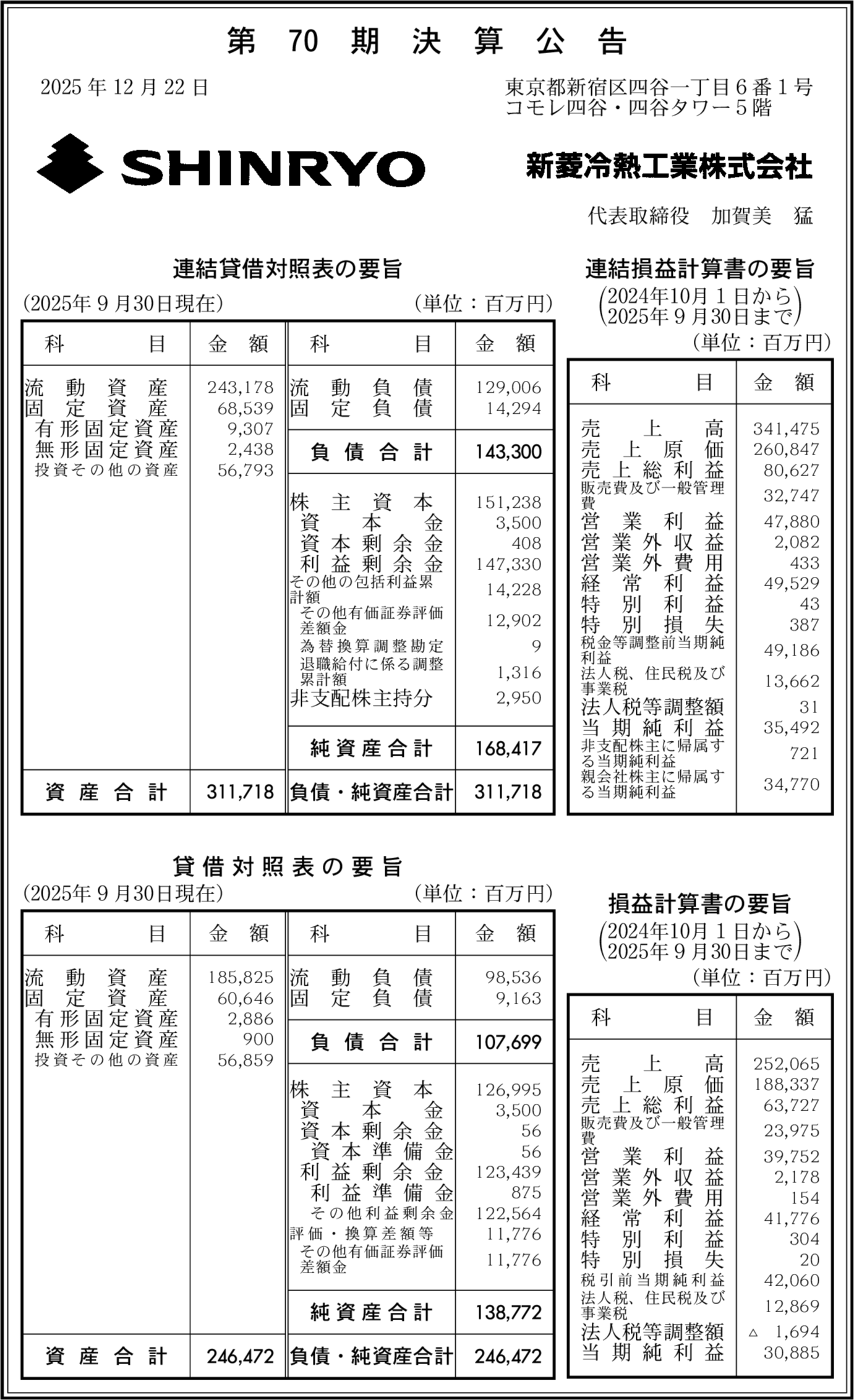 新研産業株式会社 東京都新宿区 【2025年3月期】 |