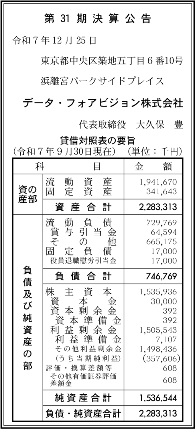 データ・フォアビジョン・ホールディングズ株式会社閉鎖済み 東京都中央区 【2017年12月期】 |
