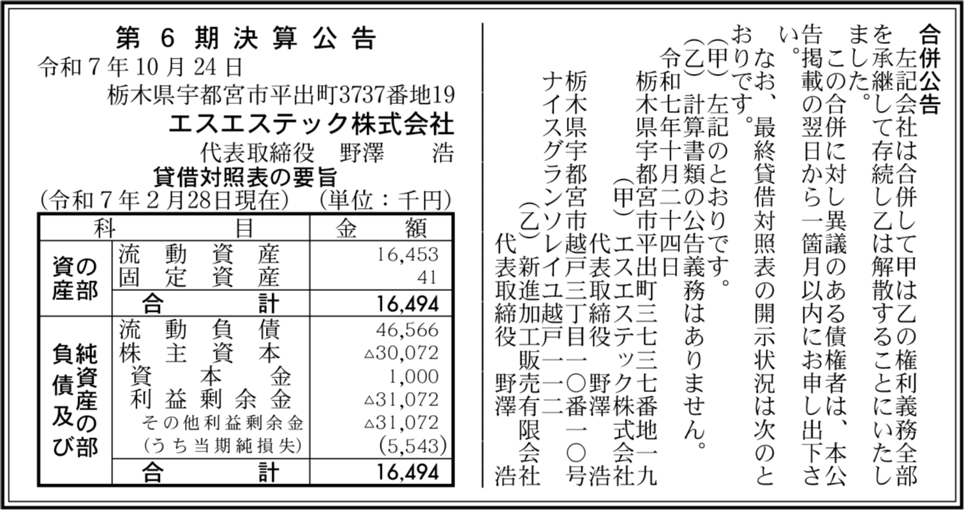 | 会社名 | エスエステック株式会社 |