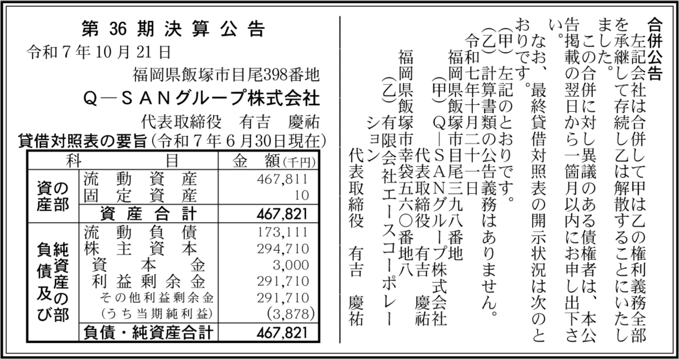 | 会社名 | Q-SANグループ株式会社 |