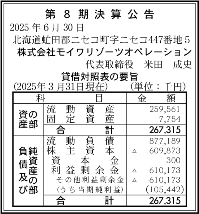 | 会社名 | 株式会社モイワリゾーツオペレーション |