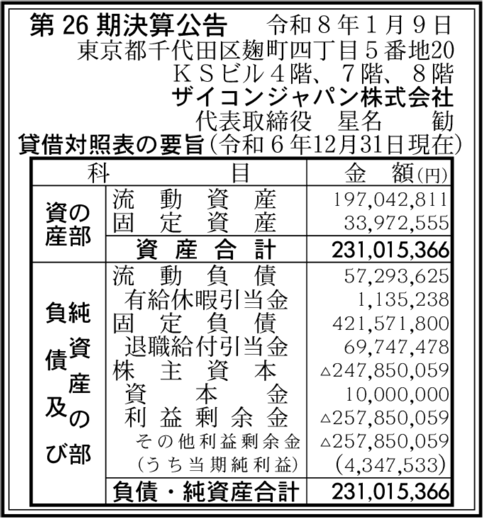 | 利益剰余金 | ▲2億5,785万59円 (赤字縮小) |