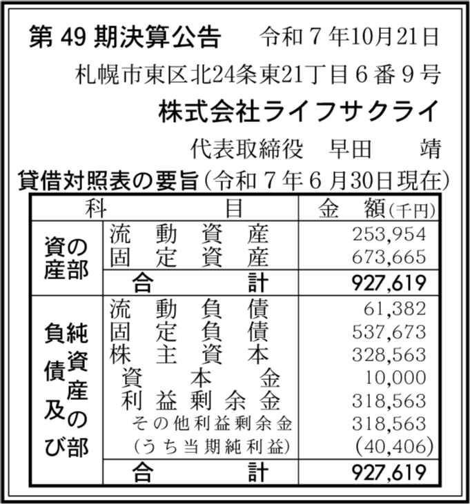 三愛ホールディングス株式会社 札幌市東区 【2025年3月期】 |